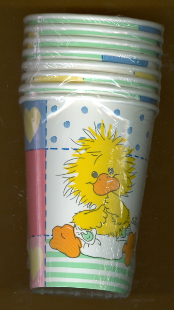 Here is a brand new, unopened package of 8 Little Suzy's Zoo paper cups. I am guessing they are either 8 or 9 ounce cups, however it does not state it on the package. All of these items have been discontinued so once I sell out of them, I cannot replace them. From a smoke free home.